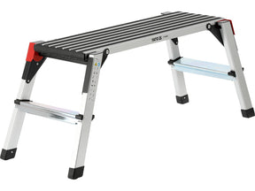 Platformă de lucru pliabilă din profile de aluminiu. Pentru siguranța utilizării, platforma este acoperită cu benzi antiderapante, iar treptele sunt în relief. Sistemul de blocare/deblocare asigură o manipulare ușoară.