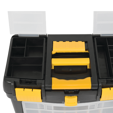 Cutie de scule tip troller cu 3 segmente pentru depozitarea sculelor și accesoriilor mici.