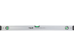 Nivela este fabricata din profil de aluminiu anodizat. Are trei flacoane care indică unghiul vertical, orizontal și 45 de grade. Capetele nivelei sunt echipate cu bare de protecție speciale pentru amortizarea șocurilor.