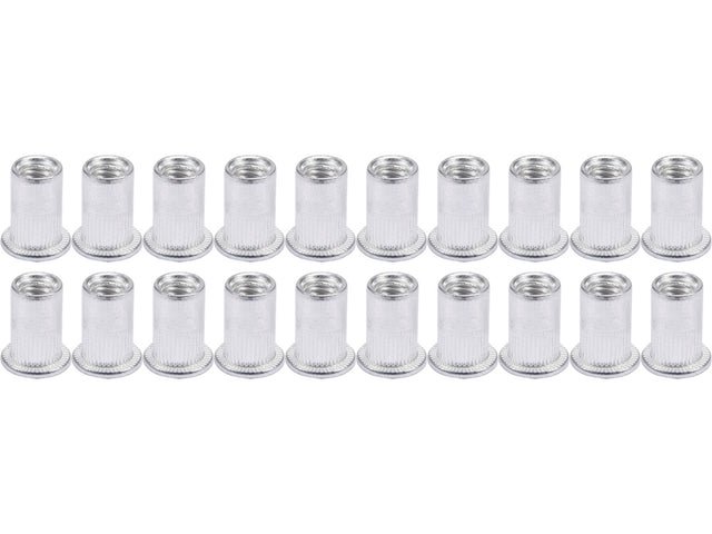 Piulite nituibile M4 YATO YT-36452. Gulerul cilindric răsucit asigură o rezistență ridicată atunci când este utilizat în materiale moi. Lungime 11mm. Setul contine 20 de piulite nituibile M4