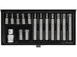 TORX YATO bitkészlet 10 mm-es hatszögletű tartóval, a legmagasabb minőségű S2 acélból készült, melyet nagy keménység (HRC 58-62) és nagy meghúzási nyomaték - 21,8 Nm - jellemez. A készlethez tartozik egy 1/2"-os adapter.