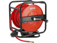 Pneumatikus szerszámok ellátására szolgáló tömlő, automatikus feltekercselőn. A flexibilis tömlő ellenáll a magas és alacsony hőmérsékletnek, a nyújtásnak és az agresszív vegyszerek hatásainak. A dob egyszerű felszerelése munkapadra vagy falra.