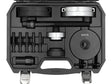 Un set de scule pentru demontarea si instalarea ansamblului rulment-butuc la vehiculele VW, Audi, Seat si Skoda. Reduce riscul de deteriorare in timpul service-ului datorita unghiului de functionare optim. De asemenea, elimina necesitatea dezasamblarii componentelor suspensiei.