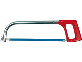Fémkeretes fűrész 250 - 300 mm. Acélcsőből készült, zárt alumínium fogantyúval. A pengét egy csavar és egy szárnyas anya hosszabbítja meg.