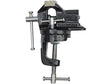 Mini satu. Rögzítés az asztalhoz rögzítőcsavarral. A satupofa helyzete a tetején található csavarral módosítható. Pofa szélessége 75 mm