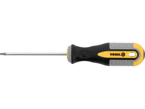 Torx T7 csavarhúzó, Vorel 60882. Króm-vanádium CrV acélból készült. A hegy szatén, polírozott és mágneses felülettel rendelkezik, amely biztonságos fogást biztosít. A fogantyú két műanyag kompozit anyagból készült.