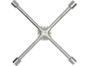 Cheie de roți in cruce, realizata din oțel de înaltă calitate, crom-vanadiu. Are 4 brațe cu tubulare potrivite pentru toate tipurile de șuruburi si prezoane folosite la autoturisme și camioane ușoare. Imbinarea bratelor a fost intarita cu tablă de oțel dublu nituita, crescand siguranța și confortul utilizării.