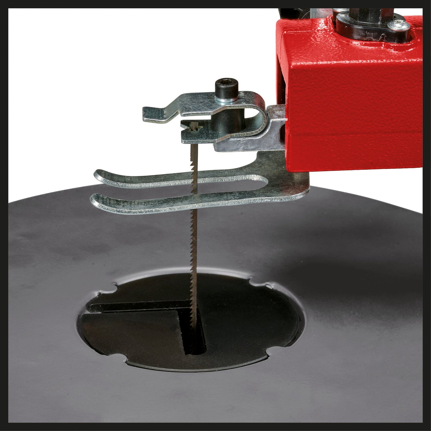 Cu ajutorul dispozitivului de prindere, lama de ferăstrău poate fi schimbată într-o clipă. Fierăstrăul de traforaj este potrivit pentru utilizare cu lame de ferăstrău cu arbore în formă de T și cu lame de ferăstrău circulare.