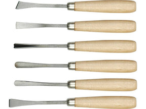 Setul conține șase dalti cu profiluri specifice utilizate la prelucrarea lemnului si lucrări artistice de sculptură. Lamele din oțel, mâner din lemn.